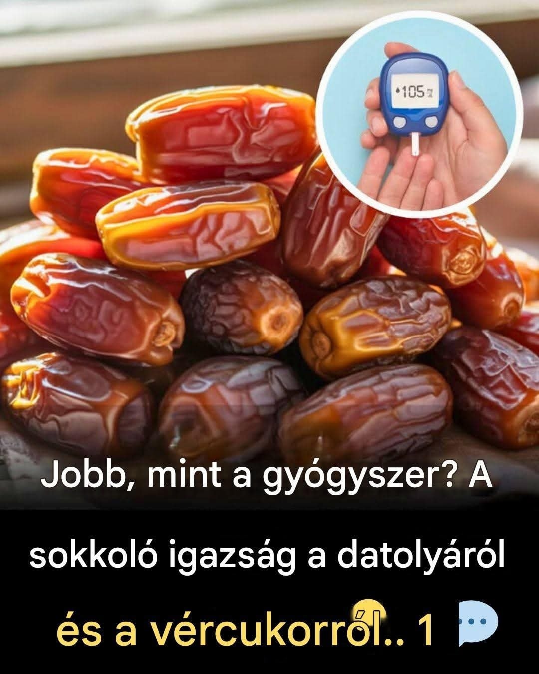 Íme a képen látható poszt alapján egy teljes, érthető recept-stílusú szöveg és magyarázat a datolyáról és a vércukorról, amit felhasználhatsz Facebook-csoportban, Pinteresten vagy blogbejegyzésként.