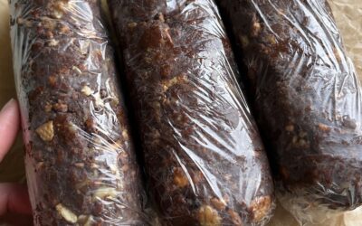 Sütés nélküli desszert gazdag, puha alappal, ropogós dióval és kekszdarabokkal, szalámi alakúra formálva. Hozzávalók 2 (4,9 unciás) csomag Marias süti…