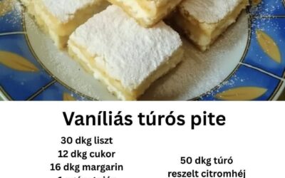 Íme a Vaníliás túrós pite teljes, folytatott receptje a képen szereplő hozzávalók alapján! Vaníliás túrós pite – teljes recept Hozzávalók…