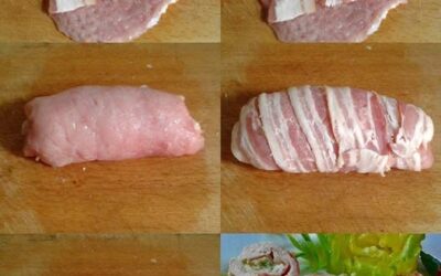Duplán baconös karajszeletek zöld fűszeres mackósajttal megspékelve