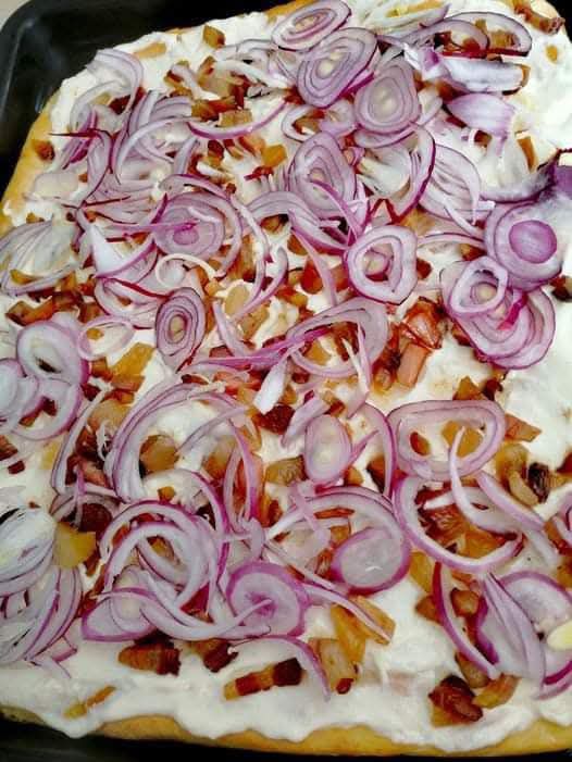 A tészta hozzávalóit tálba öntjük, alaposan összegyúrjuk, a duplájára kelesztjük. Két tepsire való alapot kapunk. A tészta fagyasztható is, ha sok egyszerre.