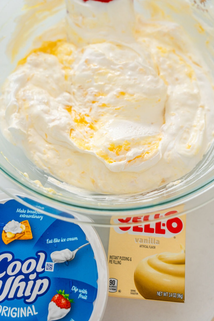 Keverjünk hozzá 1 konzerv mandarint, amíg össze nem keveredik.