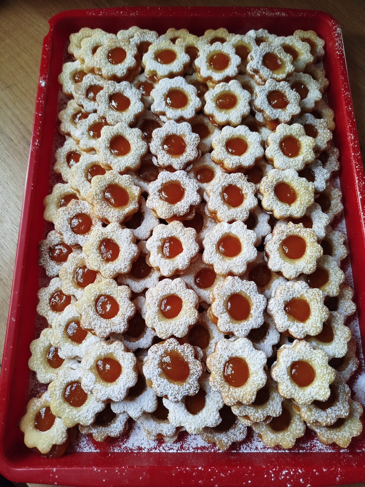 70 dkg liszt, 15 dkg zsír, 15 dkg margarin, 20 dkg porcukor, 3 tojás sárgáját, 2 vaníliás cukor, 1 citrom reszelt héja, 1 sütőpor.