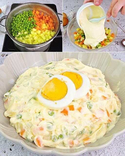 Egy lábasban, forrásban lévő, enyhén sós vízben főzd meg a zöldségeket és a borsót körülbelül 10 perc alatt, amíg megpuhulnak.